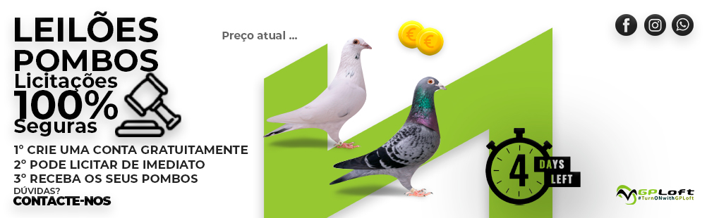 A GPLOFT tem o prazer de apresentar em leilão pombos de uma das melhores colónias nacionais "PENAS, NOGUEIRA & LOBATO" (TEAM PNL).