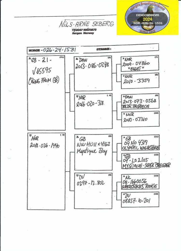 Owner: Nils Arne Seberg - A (166º Final / Ace Pigeon:175º)