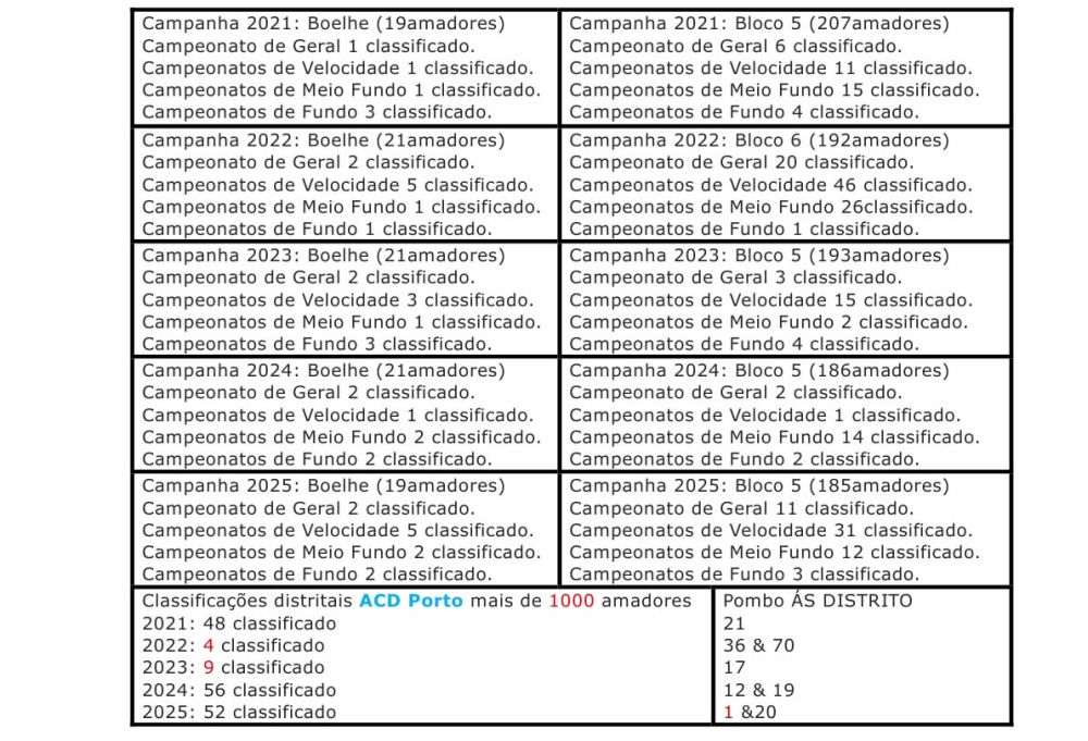 De realçar a conquista da melhor pomba do distrito em 2025.