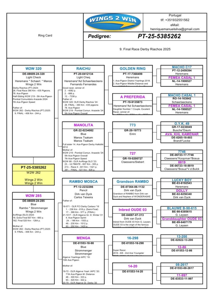 Owner: Wings 2 Win - A (9º Final / Ace Pigeon:44º)