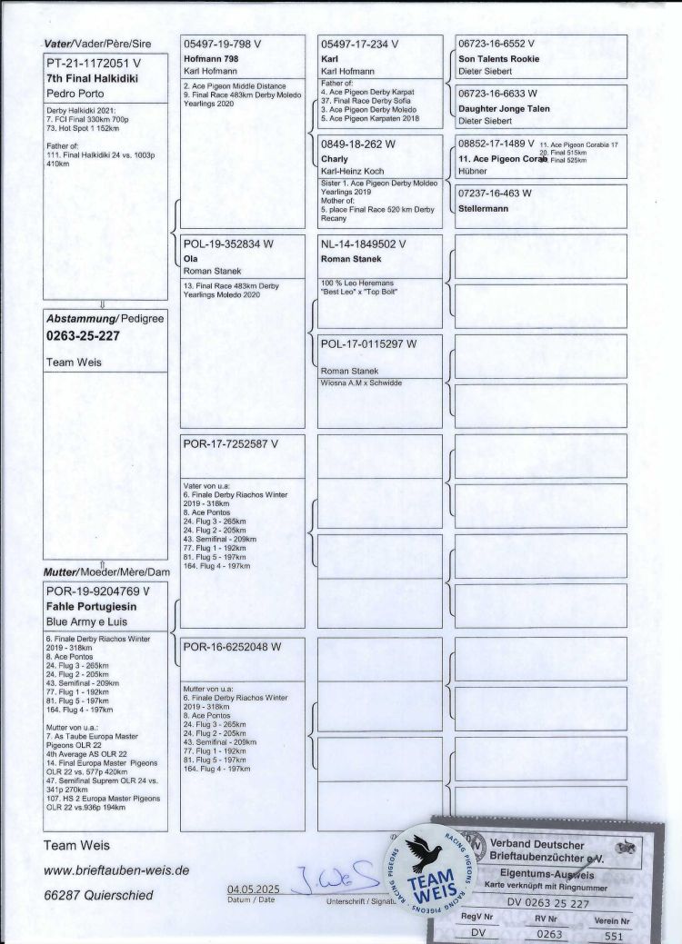 Owner: Team Weis - B (5º Final / Ace Pigeon:42º)