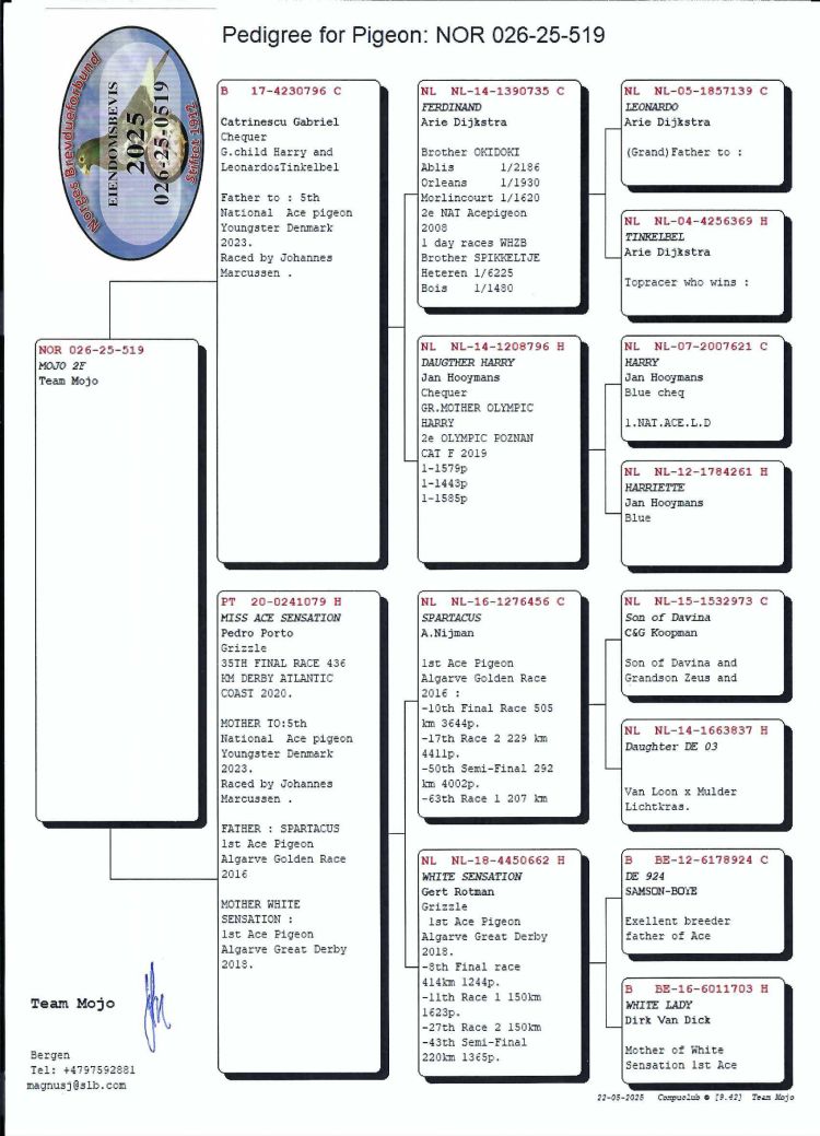 Owner: Team Mojo - B (1º Final / Ace Pigeon:41º)