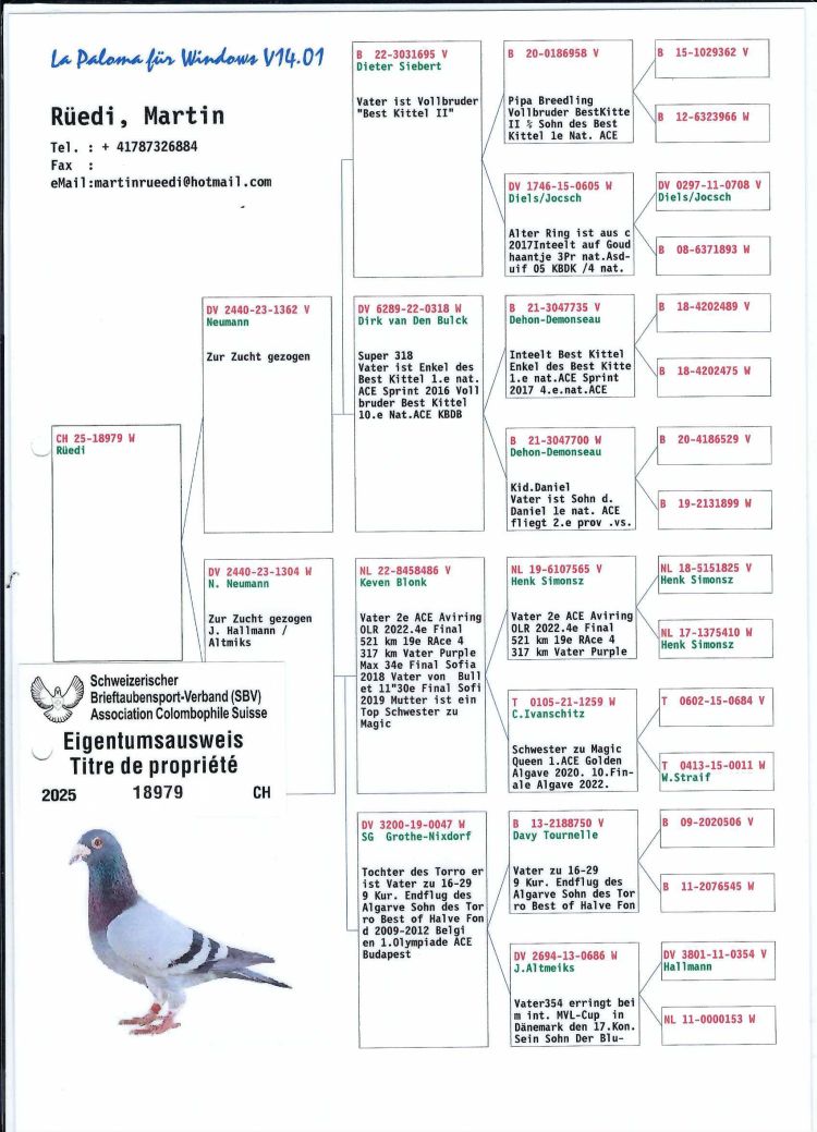 Owner: Ruedi Martin - A (82º Final / Ace Pigeon:115º)
