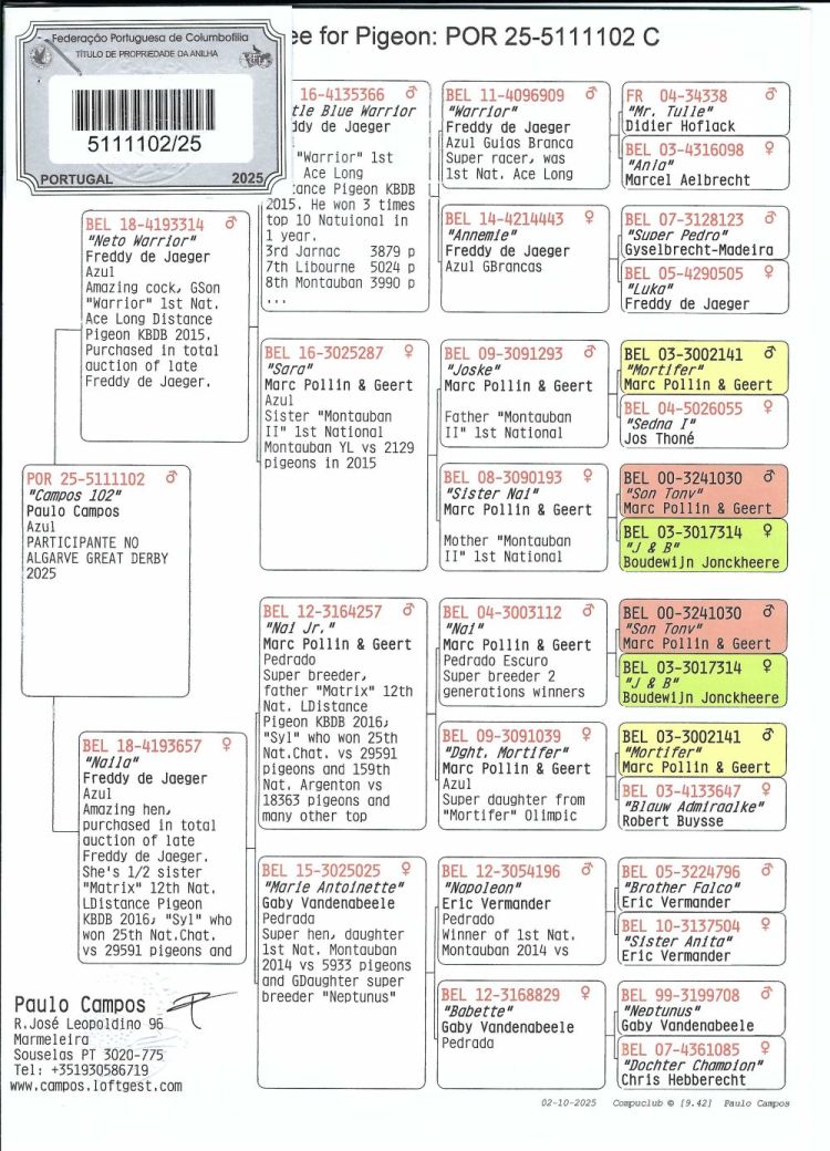 Owner: Paulo Campos (119º Final / Ace Pigeon:162º)