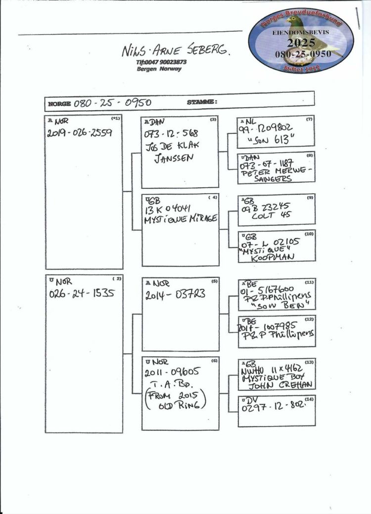 Owner: Team Tufte / Hegland (102º Final / Ace Pigeon:188º)