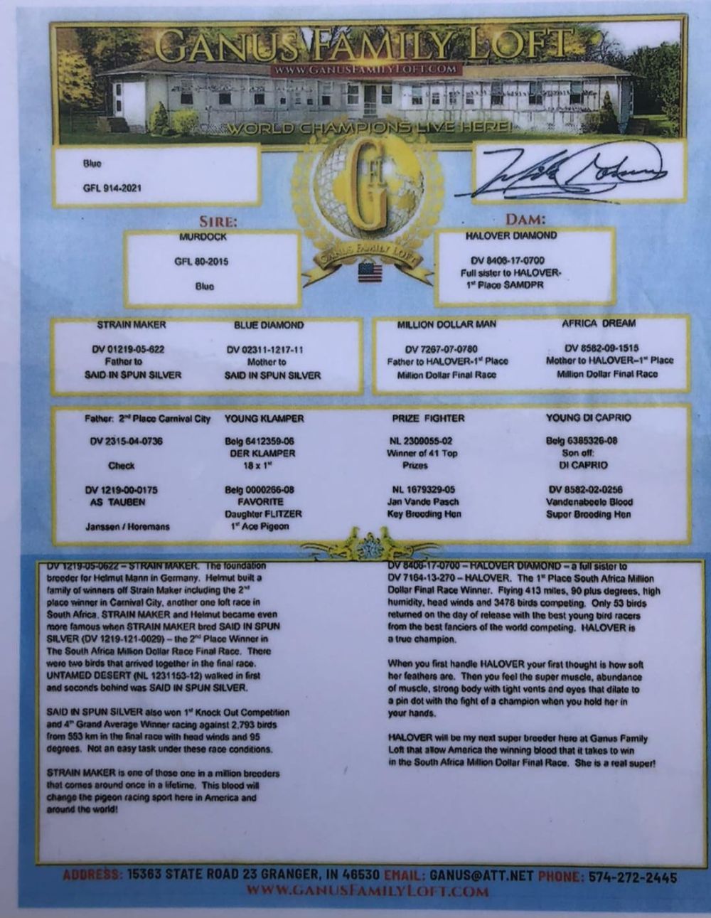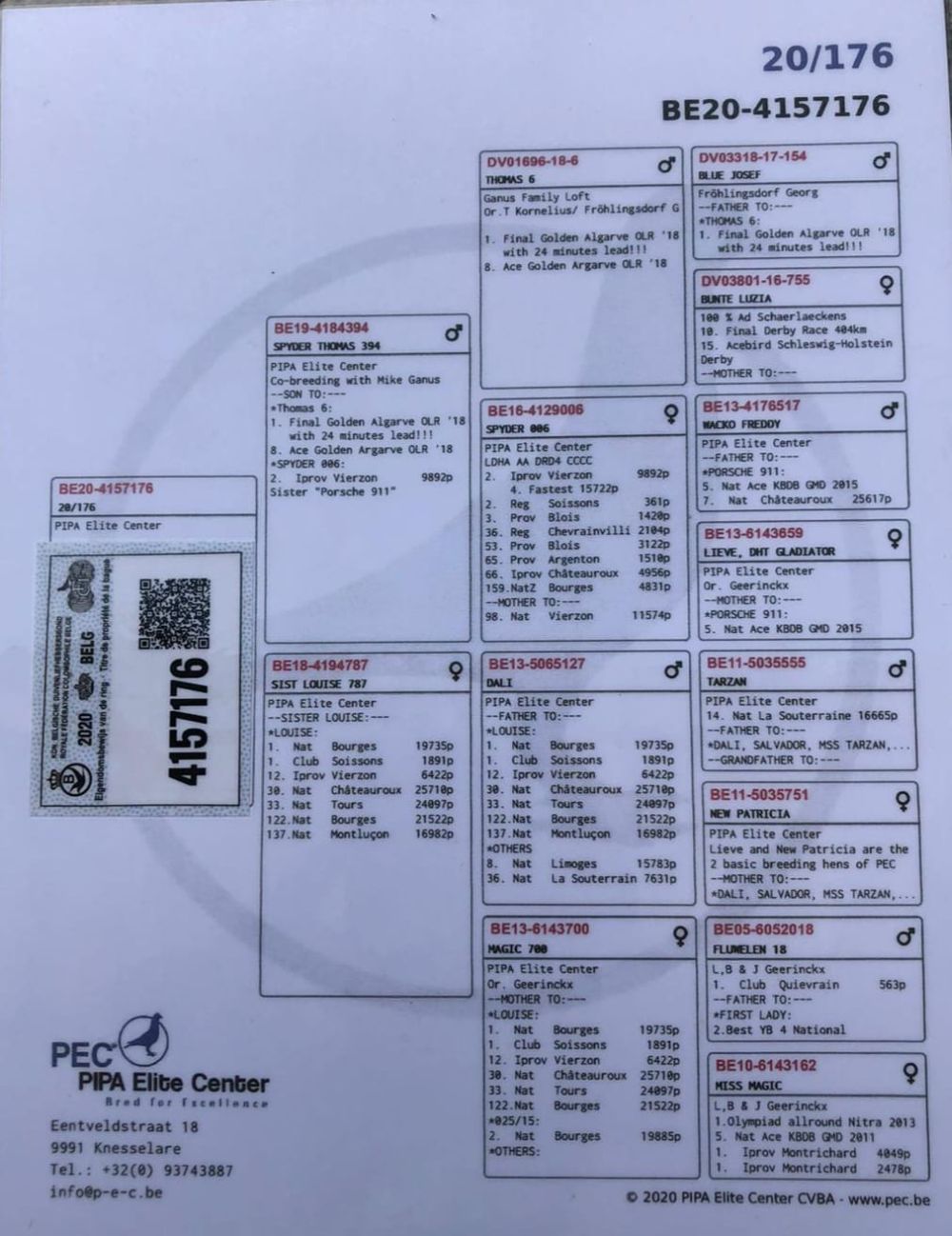 Leilão de pombos das melhores linhas que há. Pombos originais, netos da linha Porsche 911. Pombos originais de Mike Ganos e Hok Reijnen.