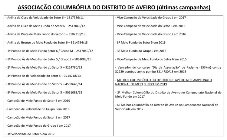 Sou columbófilo desde 1997, ano em que anilhei os primeiros borrachos embora não tivessem origem definida. Nos primeiros anos as prestações foram medíocres pois não tinha grandes conhecimentos. Os anos passaram, até que em 2004 o Sr. Paulo Campos me ofereceu um neto do famoso “601” que se revelou grande voador e reprodutor.