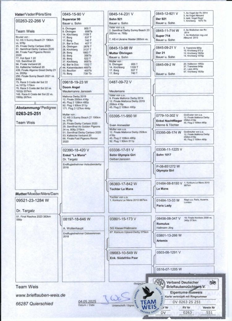 Owner: Team Weis - B (604º Final / Ace Pigeon:975º)