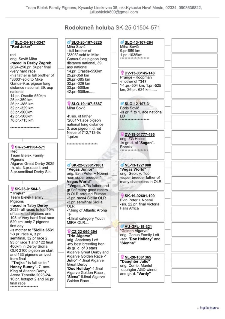 Owner: Krajcik Daniel & Andrea #ORM (238º Final / Ace Pigeon:76º)