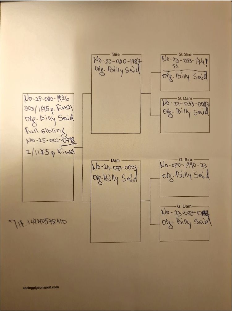 Owner: Winston Van Der Pol / Billy Said (303º Final / Ace Pigeon:138º)