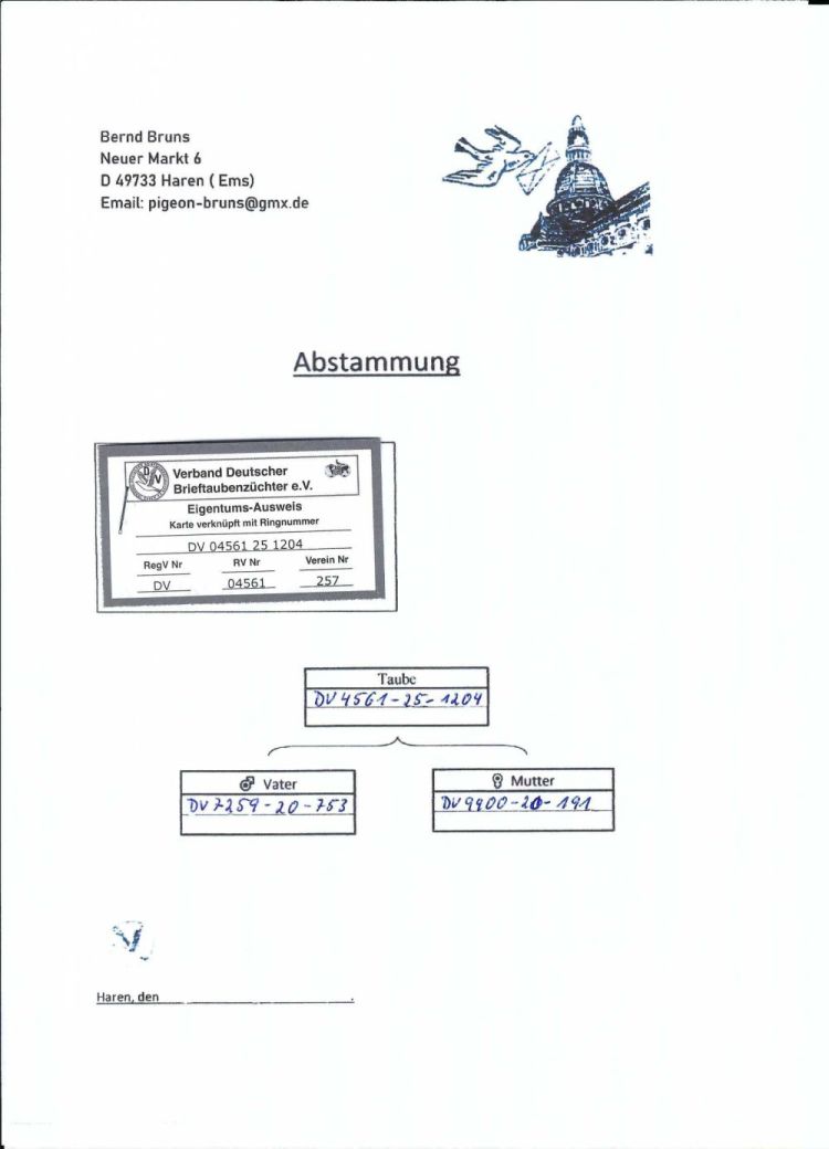Owner: Bernd Bruns - A #423 (152º Final / Ace Pigeon:407º)