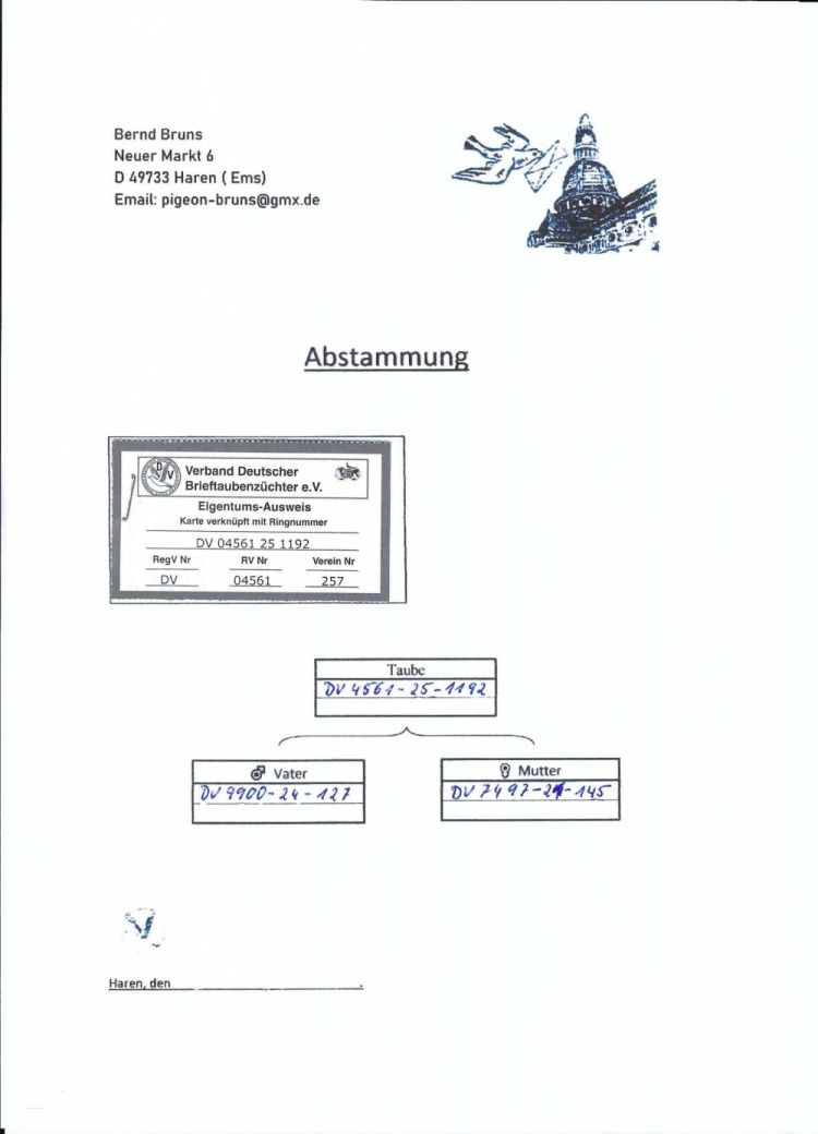 Owner: Bernd Bruns - A #423 (443º Final / Ace Pigeon:437º)