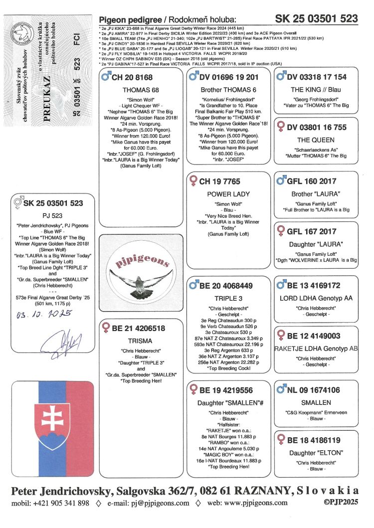 Owner: PJ Pigeons - A (573º Final / Ace Pigeon:455º)