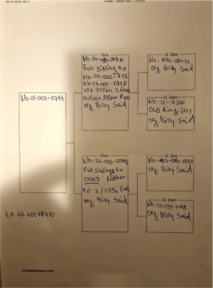 Owner: Billy Said / Khalid Janabi - B (477º Final / Ace Pigeon:383º)