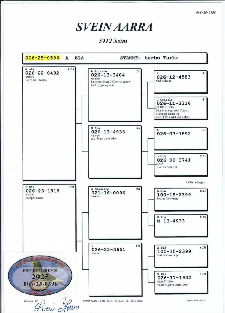 Owner: Roy Inge Johnsen (335º Final / Ace Pigeon:531º)