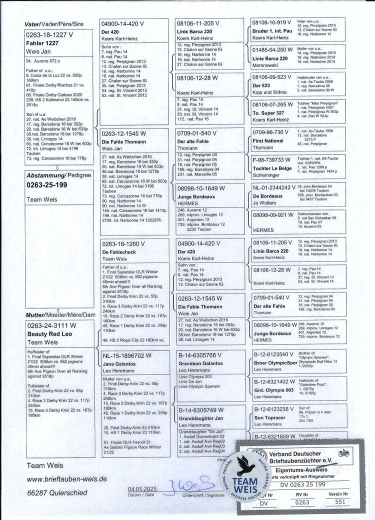 Owner: Team Klaus Stretz - A (435º Final / Ace Pigeon:415º)
