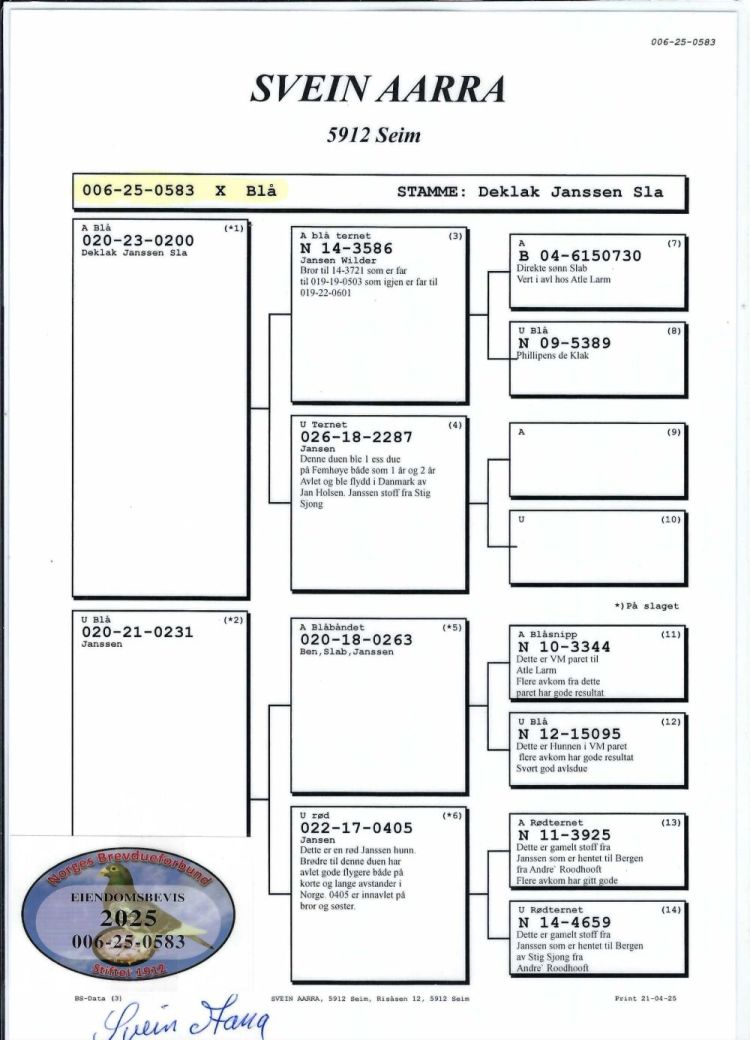 Owner: Team Klaus Stretz - A (435º Final / Ace Pigeon:415º)