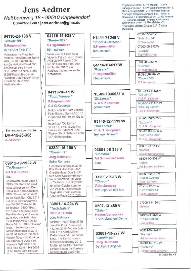 Owner: Jens-Carina Aedtner (282º Final / Ace Pigeon:247º)
