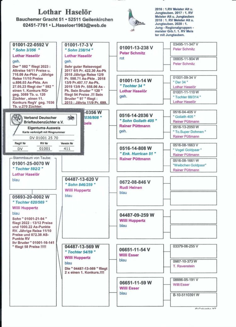 Owner: Team Andreas Schaefer / Marco Voss - A (337º Final / Ace Pigeon:381º)