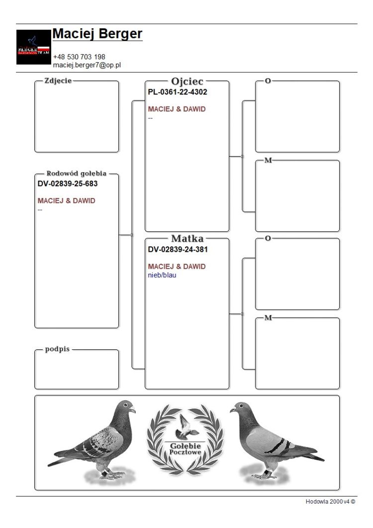 Owner: Maciej & Dawid Berger (300º Final / Ace Pigeon:182º)
