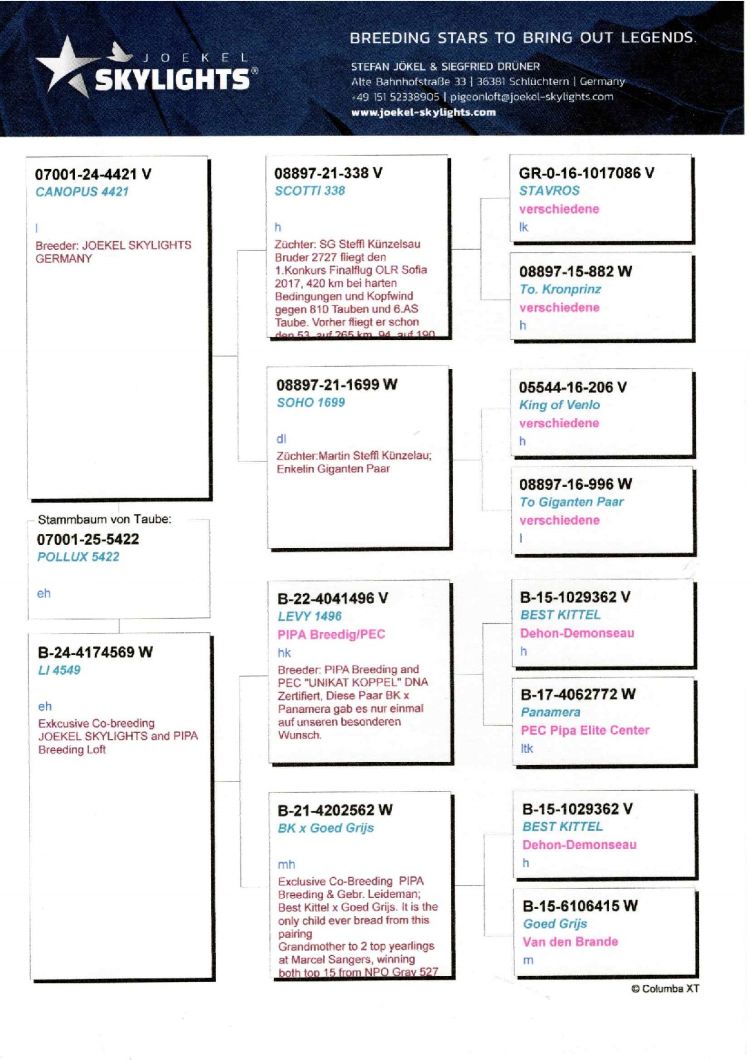 Owner: Team Andreas Schaefer / Marco Voss - A (337º Final / Ace Pigeon:381º)