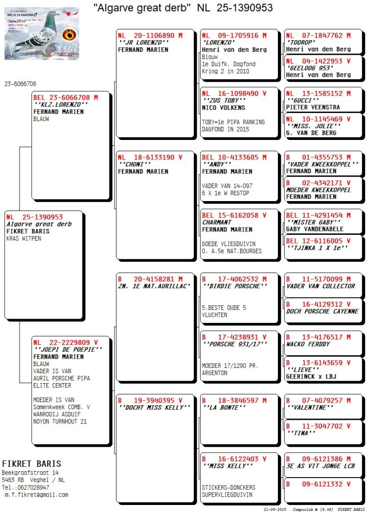 Owner: Team Andreas Schaefer / Marco Voss - A (337º Final / Ace Pigeon:381º)