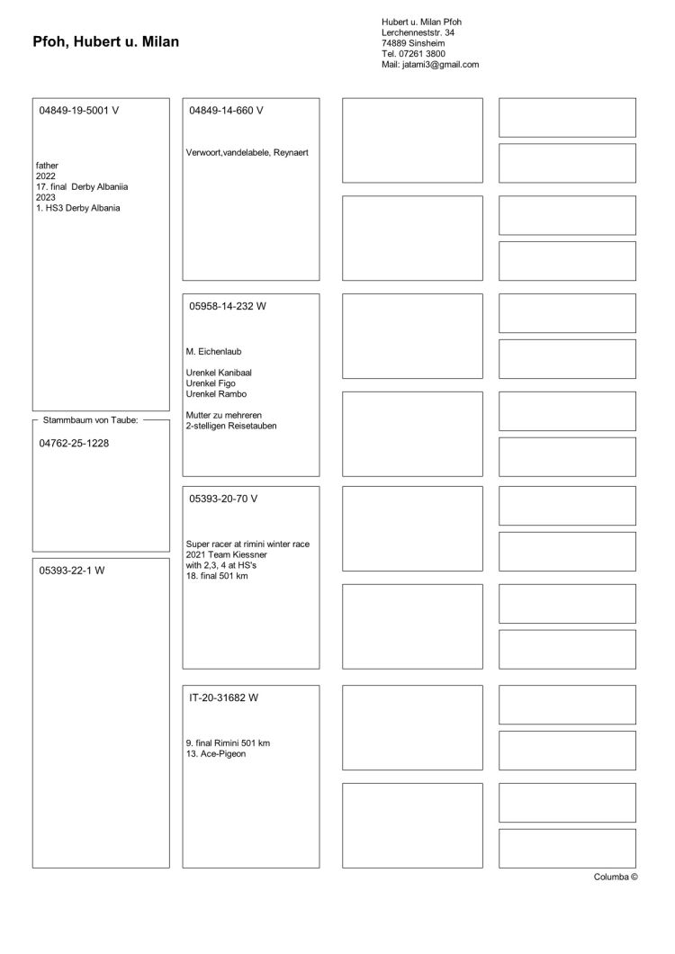 Owner: Team Pfoh-Henrich (264º Final / Ace Pigeon:325º)