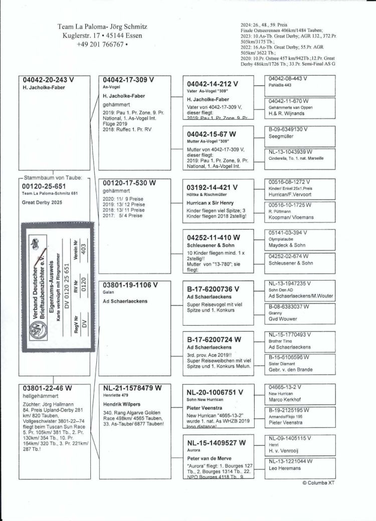 Owner: Team Andreas Schaefer / Marco Voss - A (337º Final / Ace Pigeon:381º)