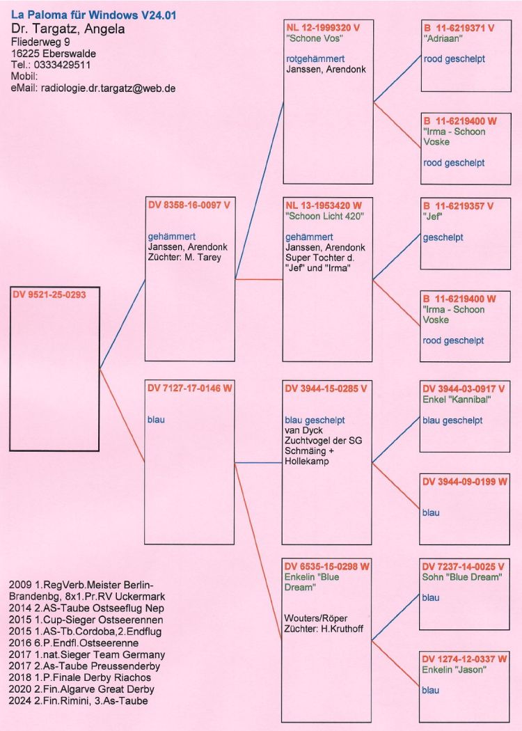 Owner: Dr. Angela Targetz - A (240º Final / Ace Pigeon:337º)