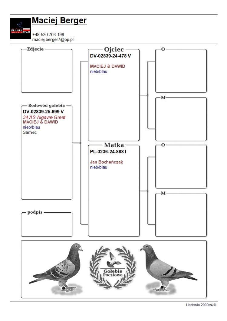 Owner: Maciej & Dawid Berger (350º Final / Ace Pigeon:34º)