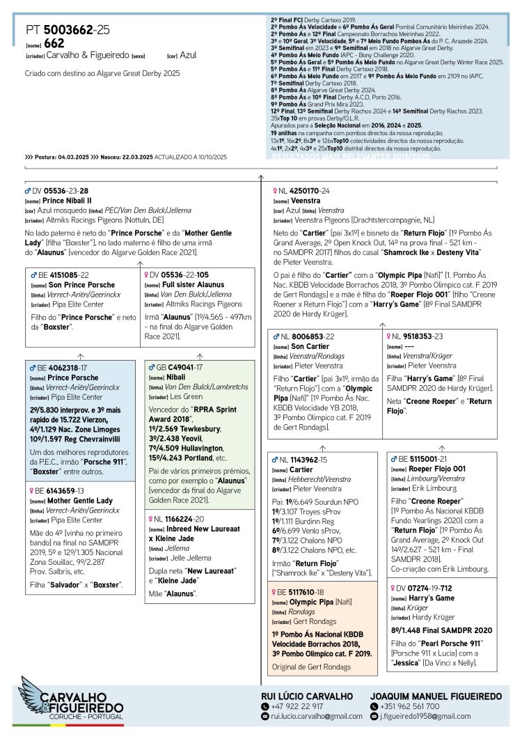 Owner: Carvalho & Figueiredo - A (305º Final / Ace Pigeon:562º)