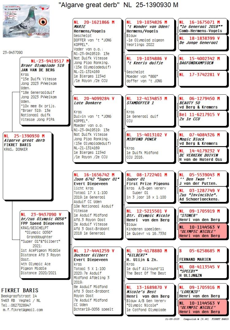 Owner: Team Vissers-Baris - A (258º Final / Ace Pigeon:356º)