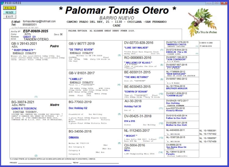Owner: Tándem Otero (421º Final / Ace Pigeon:467º)