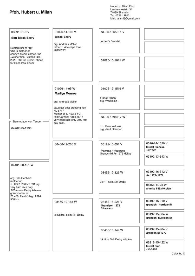 Owner: Team Pfoh-Henrich (450º Final / Ace Pigeon:175º)