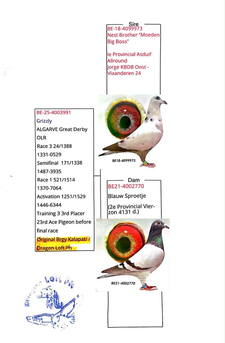 Owner: BRGY Kalapati / Dragon Loft PH (609º Final / Ace Pigeon:596º)
