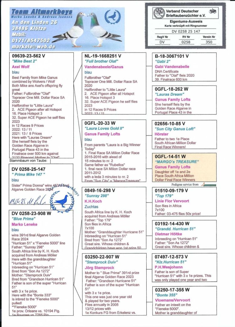 Owner: Andreas Behlke (464º Final / Ace Pigeon:351º)
