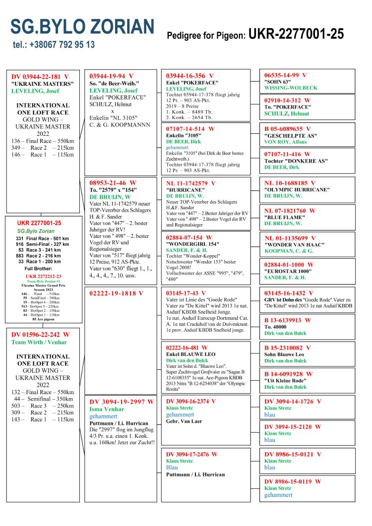 Owner: SG. Bylo Zoryan. OLR. Ukraine Master (331º Final / Ace Pigeon:120º)