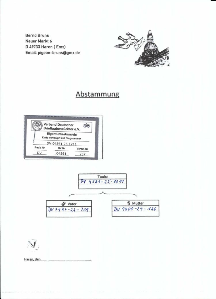 Owner: Bernd Bruns - A #423 (273º Final / Ace Pigeon:72º)