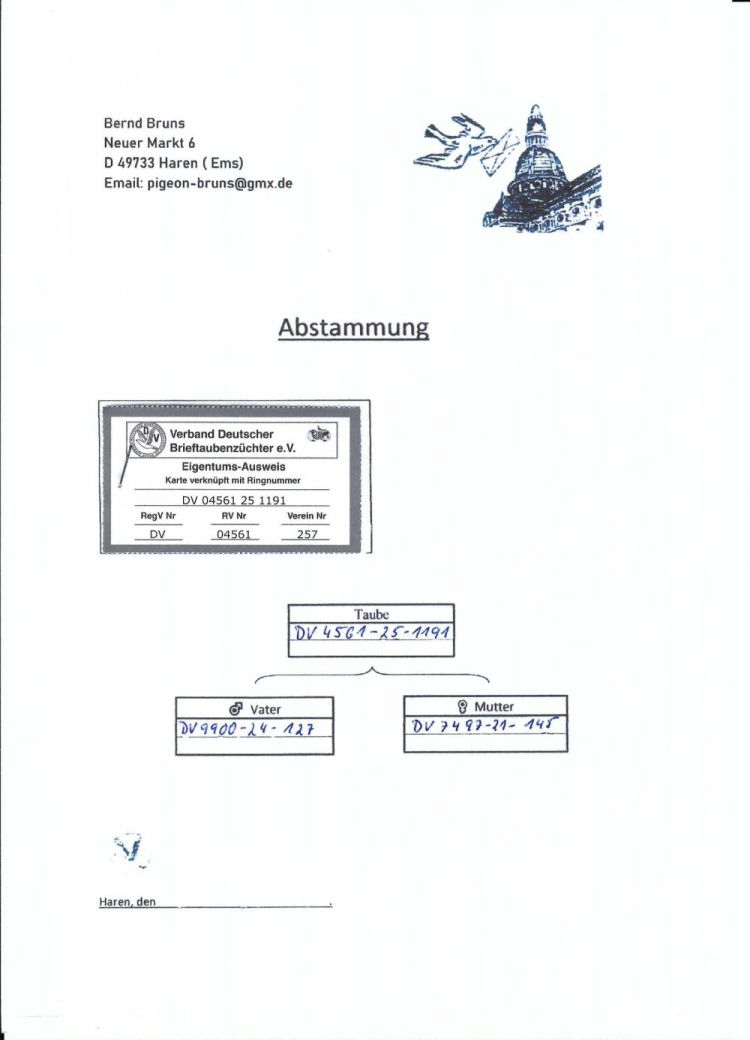 Owner: Bernd Bruns - B #423 (316º Final / Ace Pigeon:530º)