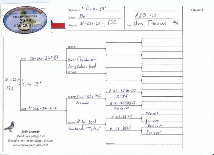Owner: Stein Thorsen (219º Final / Ace Pigeon:232º)
