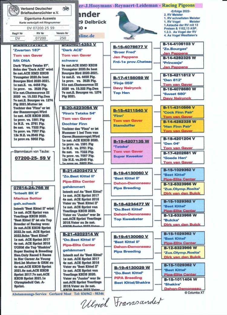 Owner: Ulrich Franzsander (200º Final / Ace Pigeon:49º)