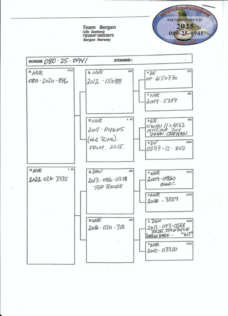 Owner: Stein Thorsen (219º Final / Ace Pigeon:232º)