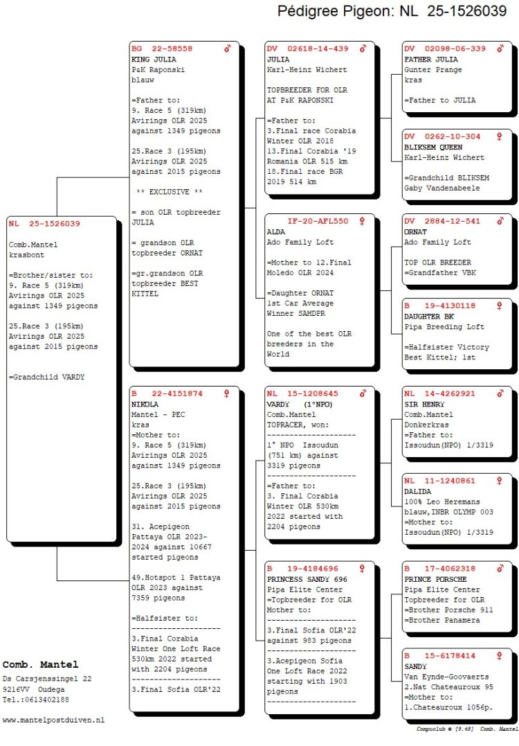 Owner: Frits & Wytse Mantel - B (525º Final / Ace Pigeon:358º)