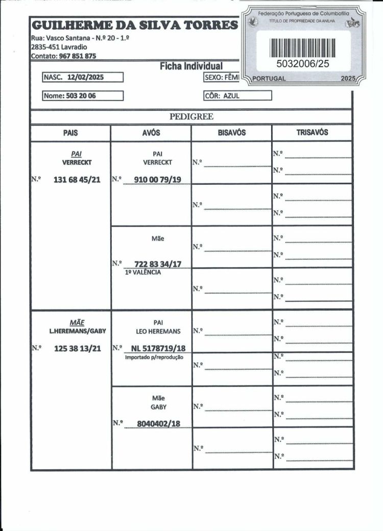 Owner: Guilherme e Arlete Torres (217º Final / Ace Pigeon:342º)