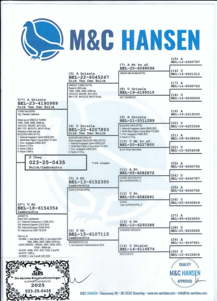 Owner: M & C Hansen (564º Final / Ace Pigeon:572º)