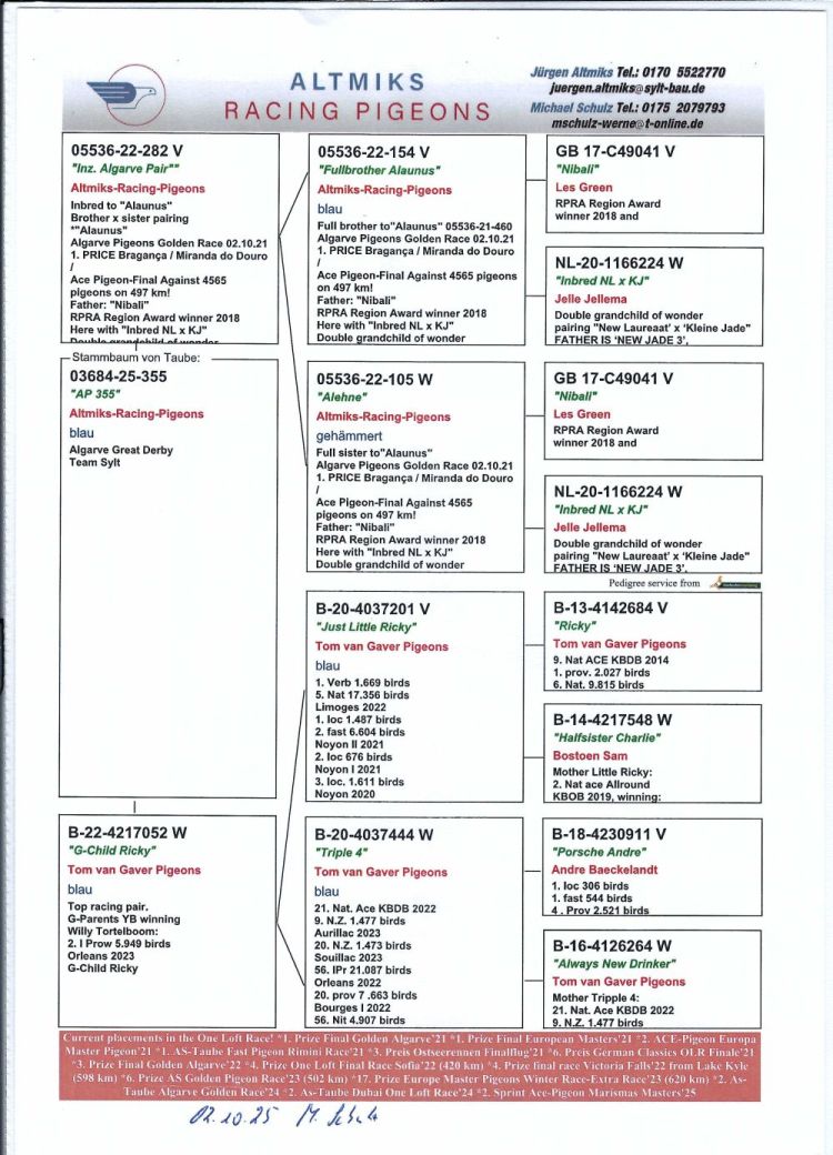 Owner: Team-Sylt-2000 - A - Altmiks (203º Final / Ace Pigeon:375º)