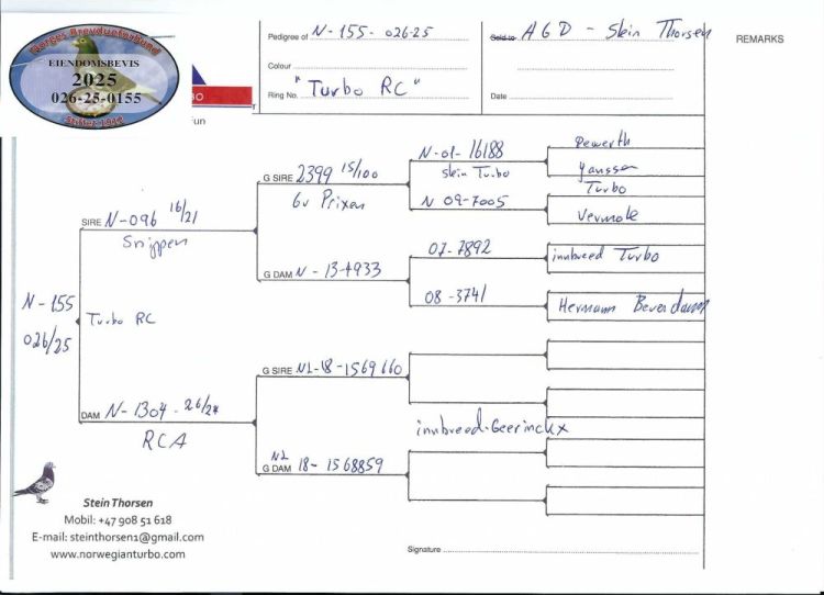 Owner: Stein Thorsen (531º Final / Ace Pigeon:305º)