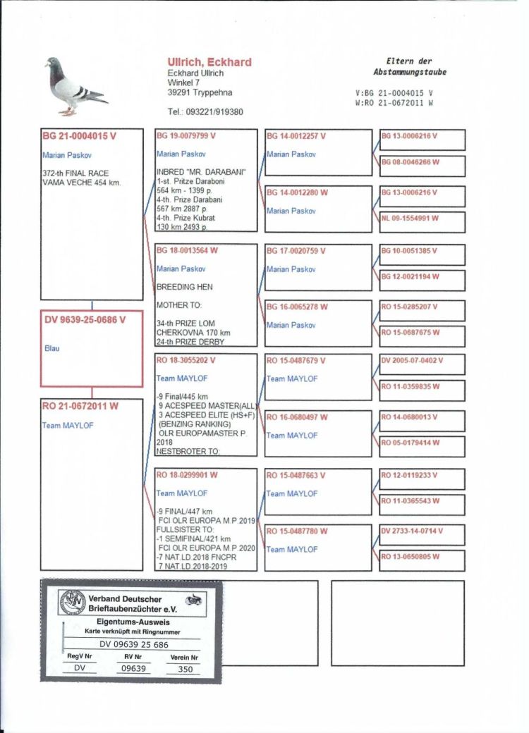 Owner: Team Lars und Alex Heinrich (339º Final / Ace Pigeon:73º)