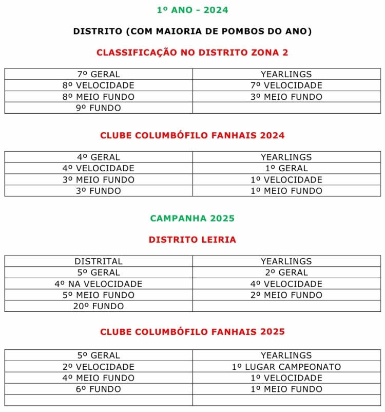 POMBAL M&C, voou dois anos no Clube Columbófilo de Fanhais, pertencente ao Distrito de Leiria: