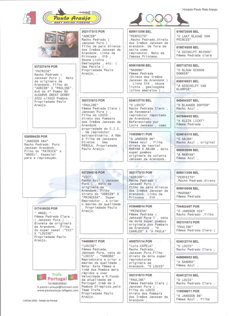 Auction PAULO ARAÚJO "BEST RACING PIGEONS"